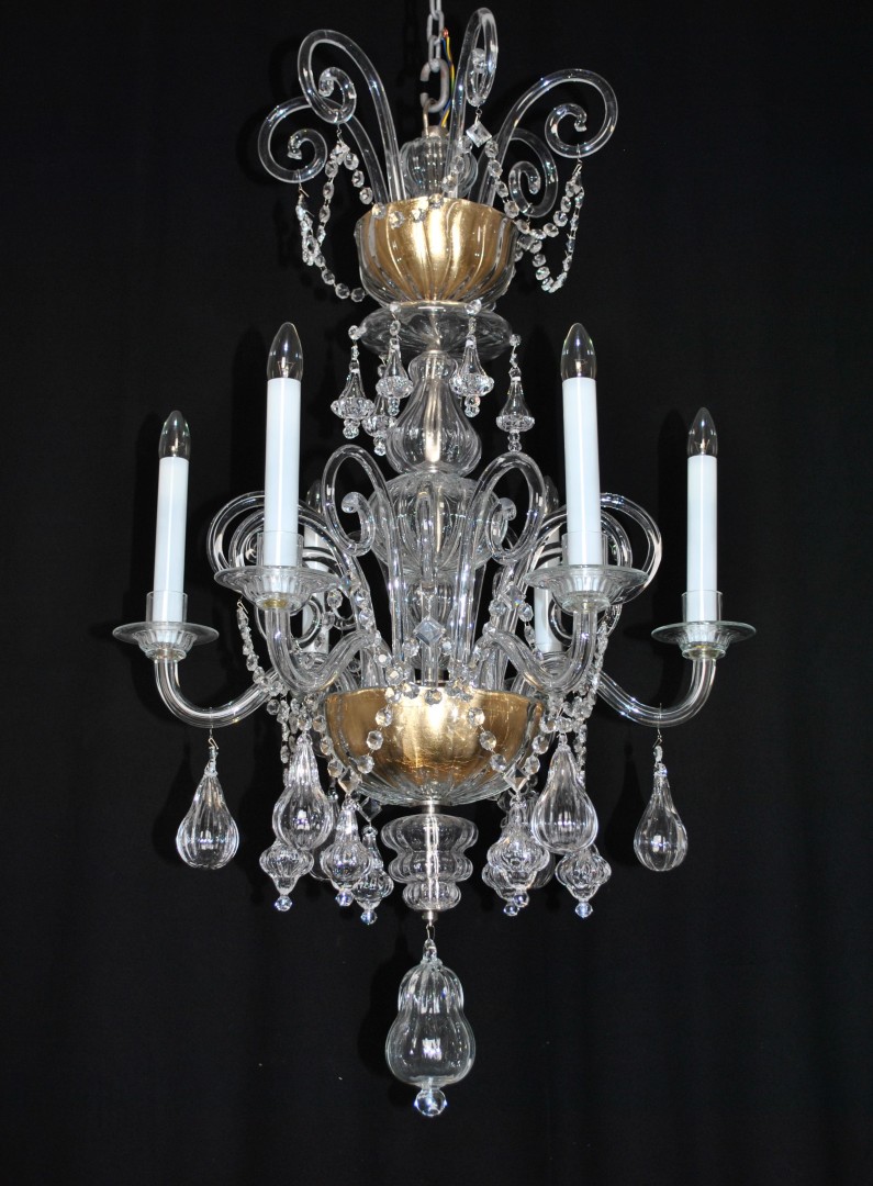 6 glass arms, 62 candle bulbs E-14, 40 Watts.