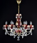 Křišťálový lustr rubínově červené barvy s ruční malbou "zlaté listy".