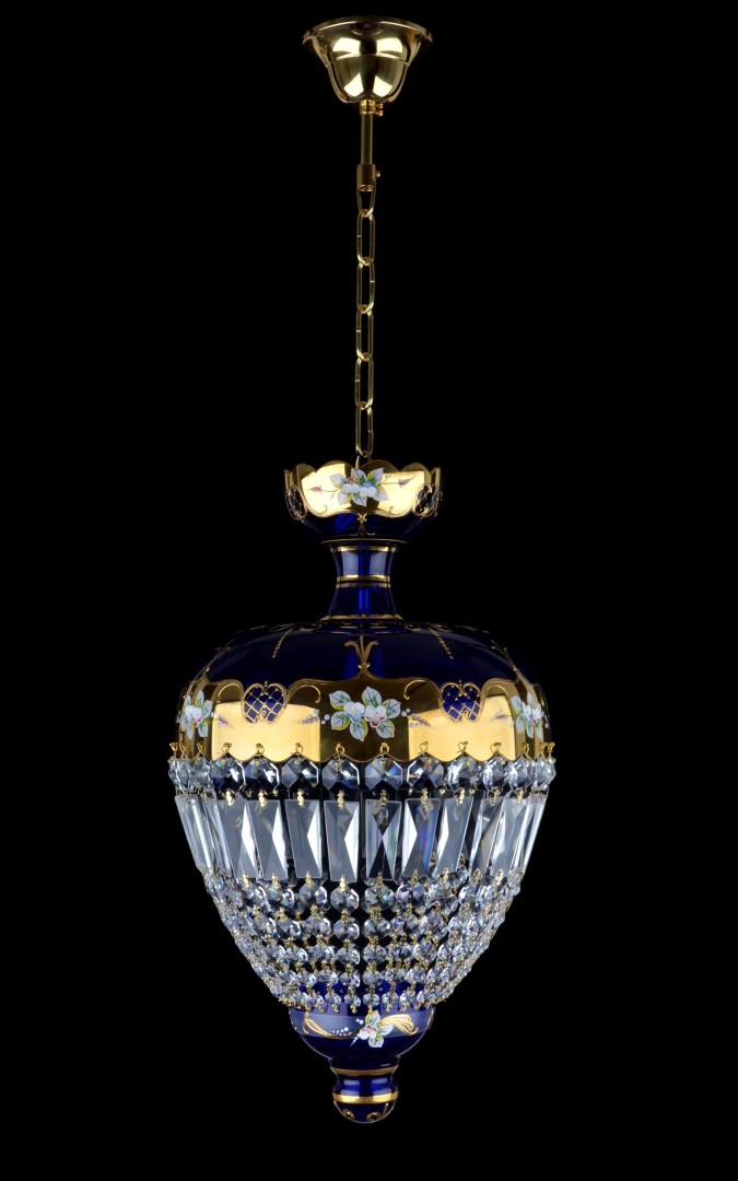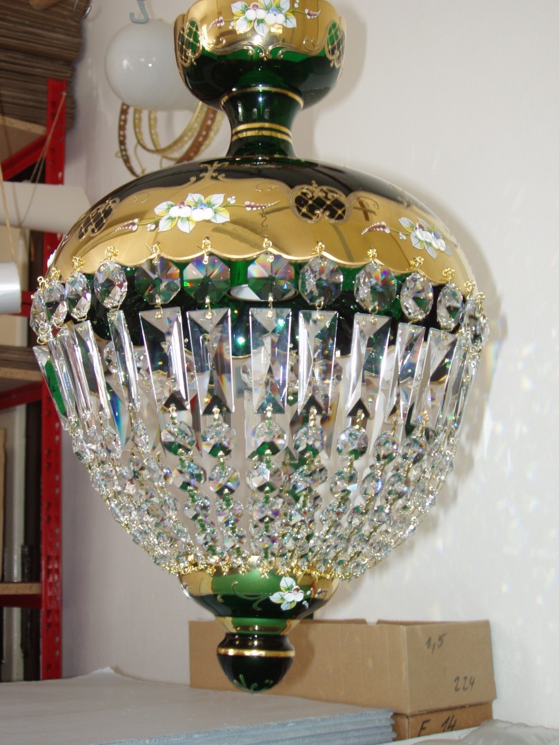 The basket crystal chandelier decorated with hand painted enamel flowers.