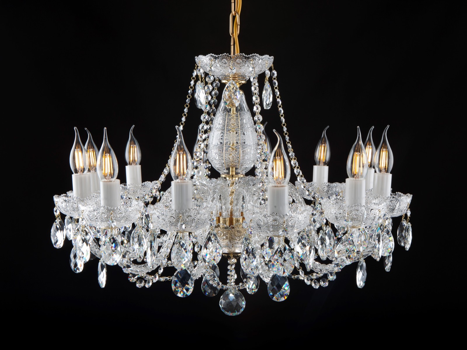 12-ti ramenný český křišťálový lustr s ručním brusem PK500 - křišťálové vachtle