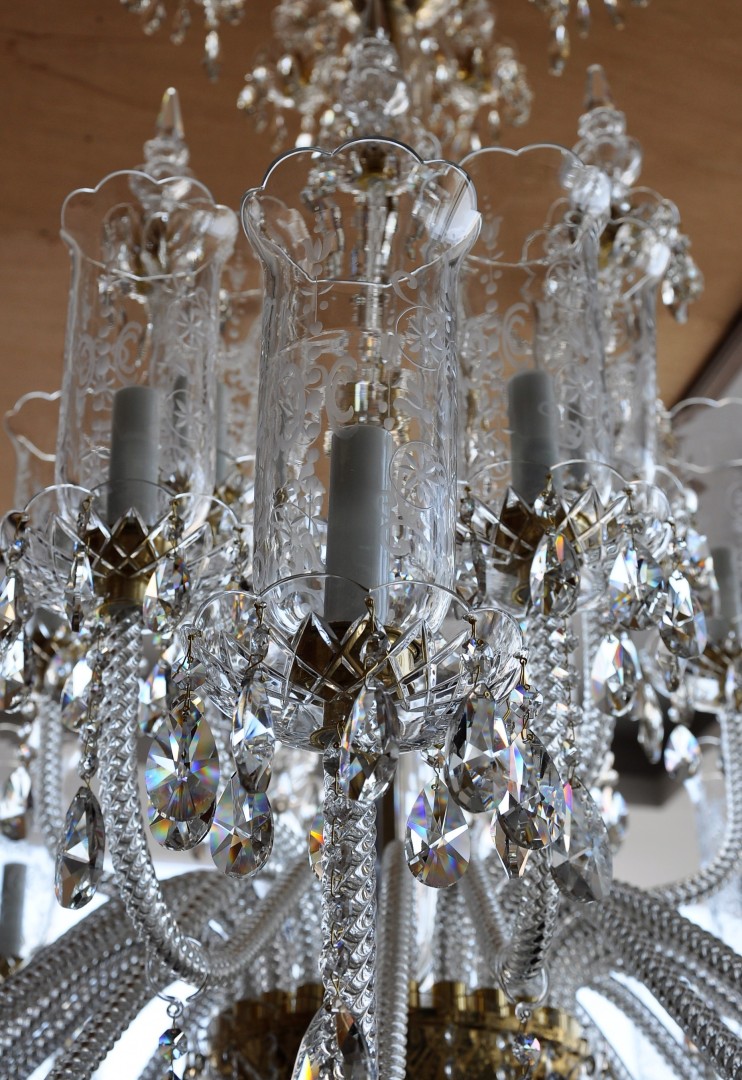 Tato řemeslná křišťálová svítidla s gravírovanými skleněnými vázami (Vanůzami), které původně zakrývaly hořící svíčky v interiérech zámků, dovedou učinit i stodolu luxusním místem. Mezi skleněnými křišťálovými ozdobami těchto zámeckých lamp často naleznete skleněné zvonky, broušené olovnaté prizmy, nebo broušené křišťálové špice.