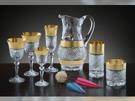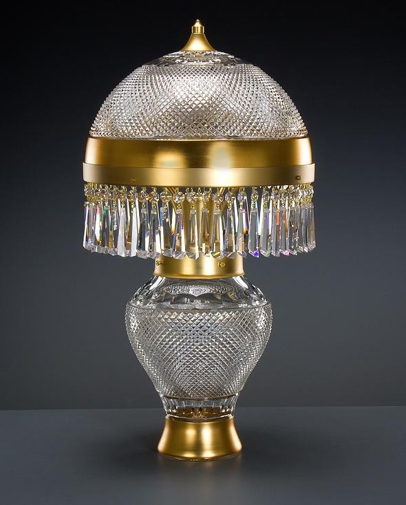 Křišťálový lustr "SOPHIA" a stolní dekorativní sklo zdobené zlatým matovým dekorem